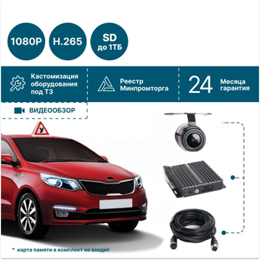 Комплект для автошколы на 4 камеры NSCAR 401 FullHD - надёжное решение для видеонаблюдения в учебном автомобиле.